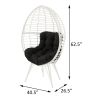 Romance CopyIndulge in comfort and modern elegance with our patio lounge chair, boasting a durable white wicker frame and sleek steel legs, while its teardrop shape adds a contemporary flair to any outdoor space. Unwind in style as you sink into the plush foam-filled cushion, providing optimal support and relaxation for lounging, reading, or simply enjoying the outdoors.Product DetailsSet includesOne (1) patio lounge chairDimensions26.5 inches high x 62.5 inches wide x 40.5 inches deepMaterialsWicker, Polyester, FoamFinish colorBlack and White