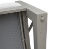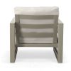 DimensionsCarton Dimensions L 35.8 x W 26.8 x H 20Features-Rust and heat resistant aluminum frame with hand brushed woodgrain finish and a sparkle frame coating-Aluminum frame is light weight and sturdy, easy to move around, and more durable than steel items which are heavy and more likely to rust than aluminum-2000 hours UV treated, solution-dyed acrylic fabric is fade and stain resistant-Extra thick 7.25-inch seat cushion makes for an exceptionally comfortable seat-3.0 density foam makes for more comfortable and durable seating with resistance to form and comfort loss common in the 2.0-2.5 density foam found in many outdoor seatsProduct DescriptionTransform your patio into a captivating showcase of neutral contemporary style with our Outdoor Arm Chair. Designed to withstand the elements, this chair combines durability with exceptional aesthetics. The beveled end panels frame a modern geometric pattern, giving it a sculpted look that is perfect for outdoor settings. Crafted with rust-resistant aluminum frames, solution-dyed acrylics, and fast-drying foam cushions, this chair offers both comfort and longevity. Embrace the best of both worlds – the appearance of indoor upholstery with the durability of outdoor furniture.