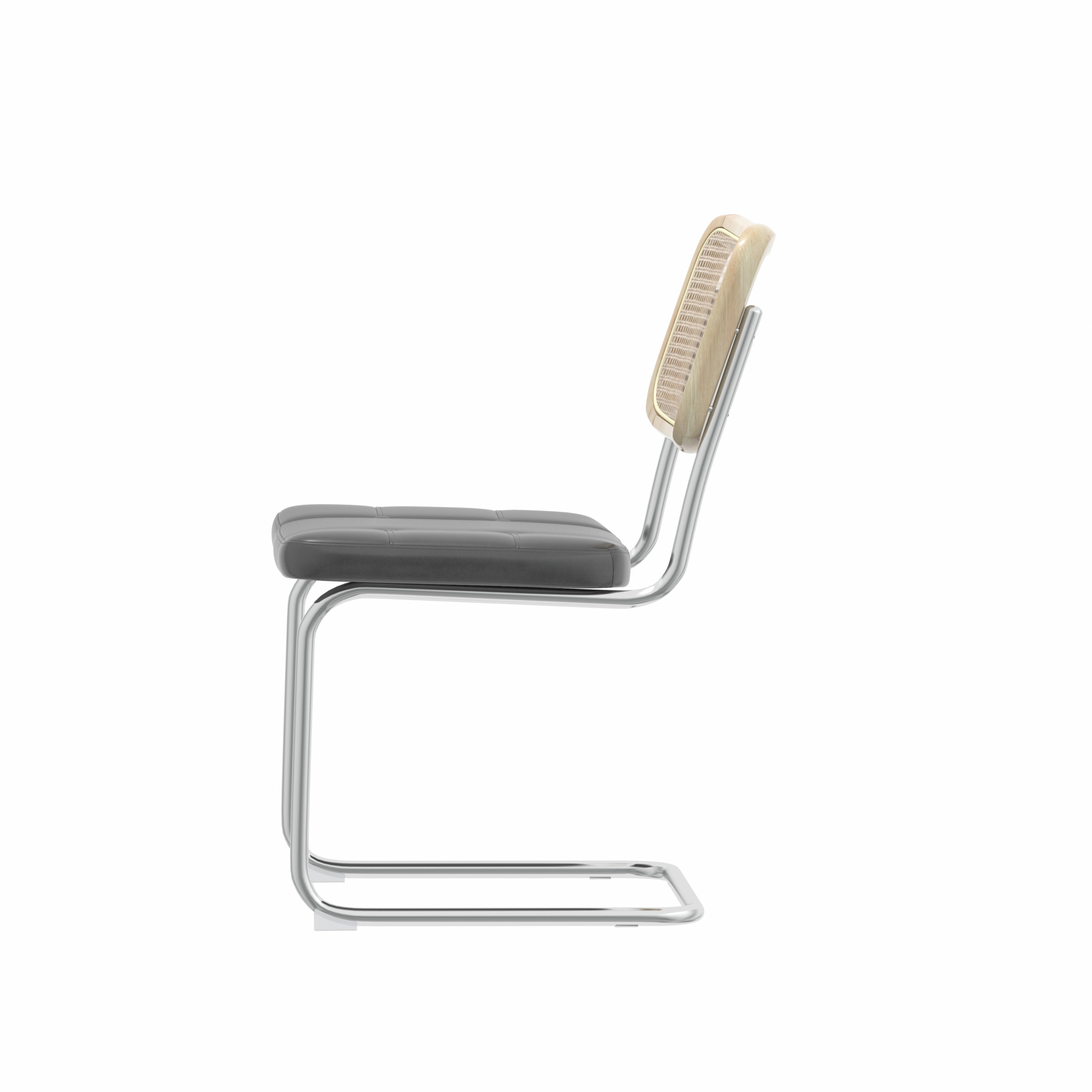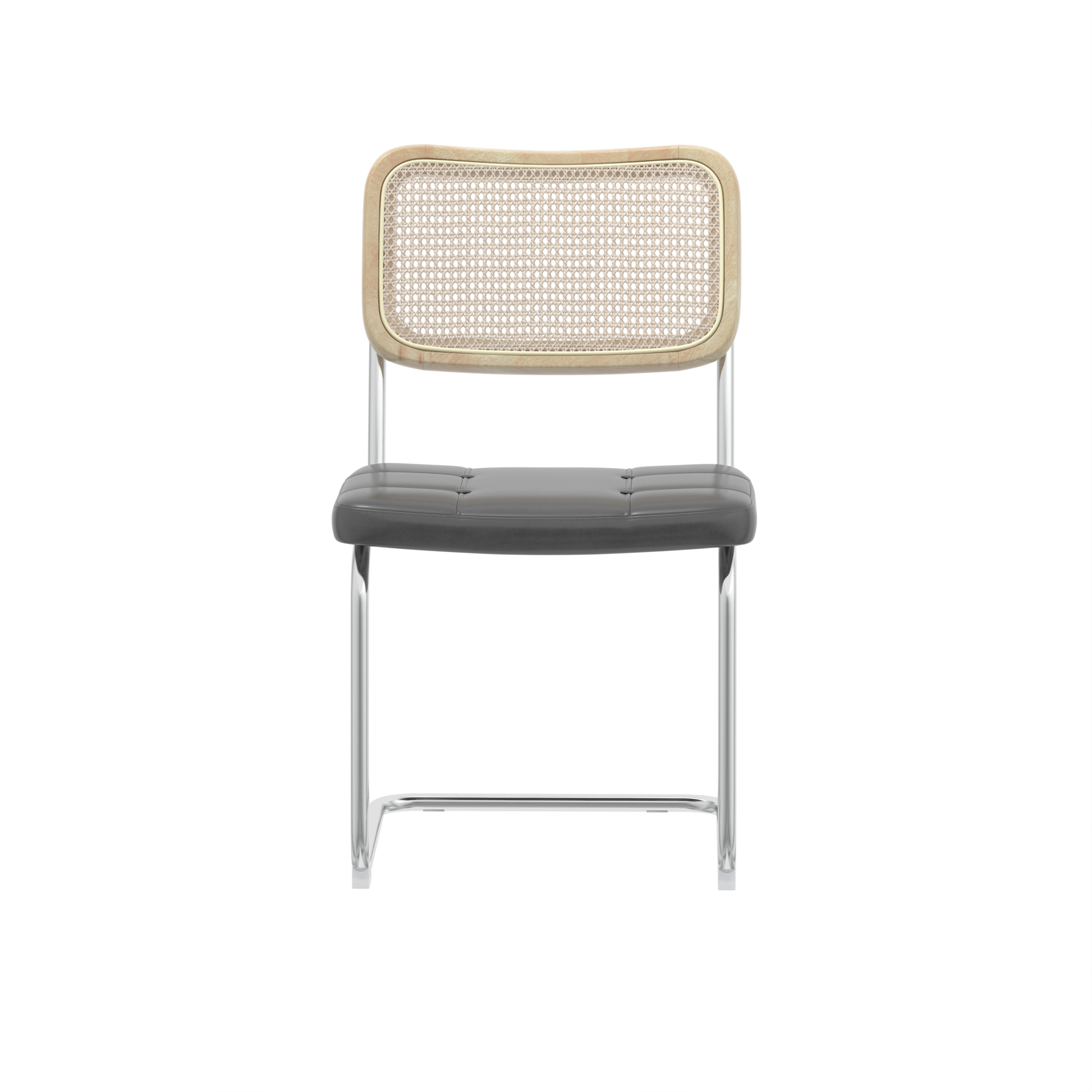 Set of 2, Leather Dining Chair with High-Density Sponge, Rattan Chair for Dining room, Living room, Bedroom, Gray