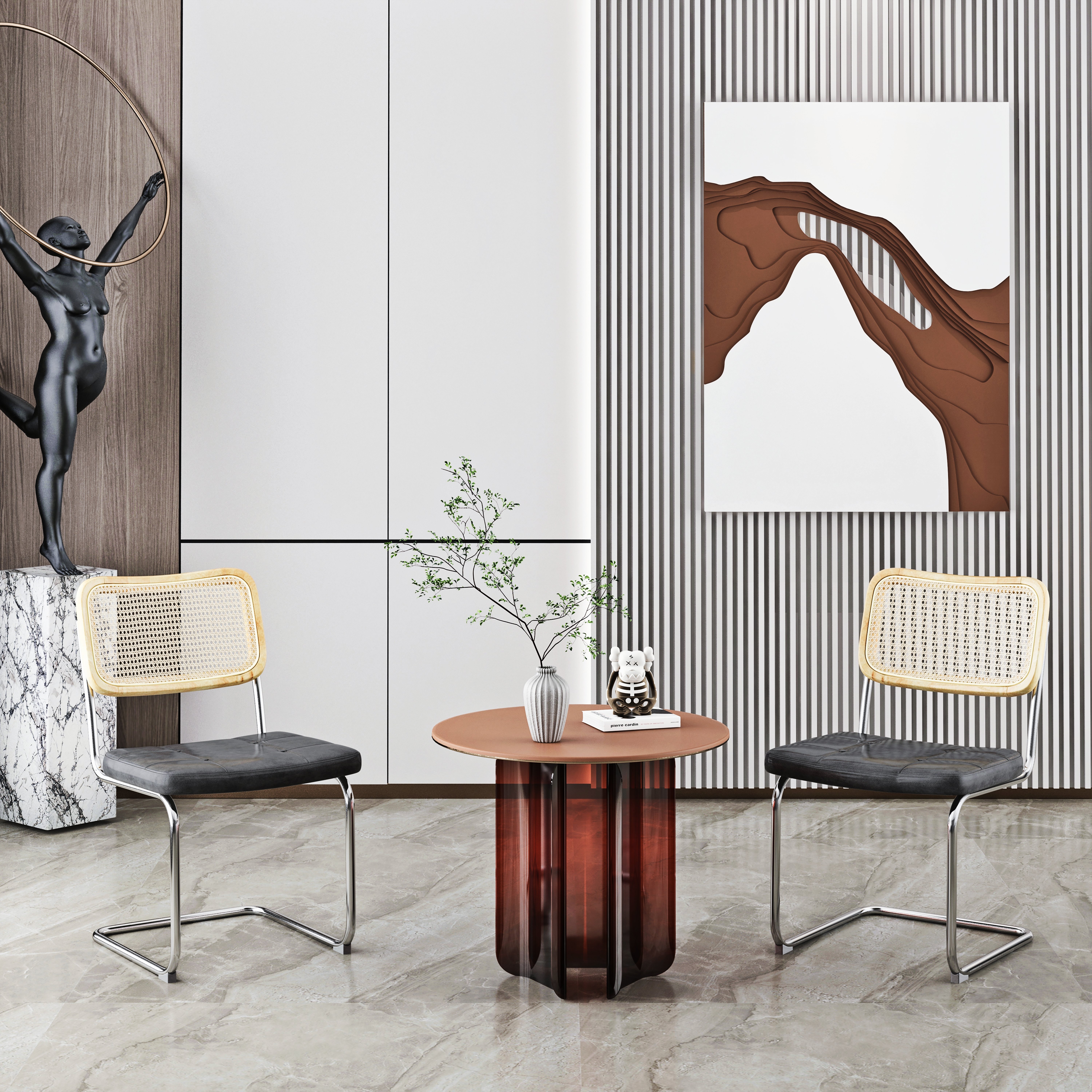 6.Exquisite appearance: The chair back is constructed with a sturdy oak wood frame and woven with rattan, adding an attractive and stylish element to the chairs.