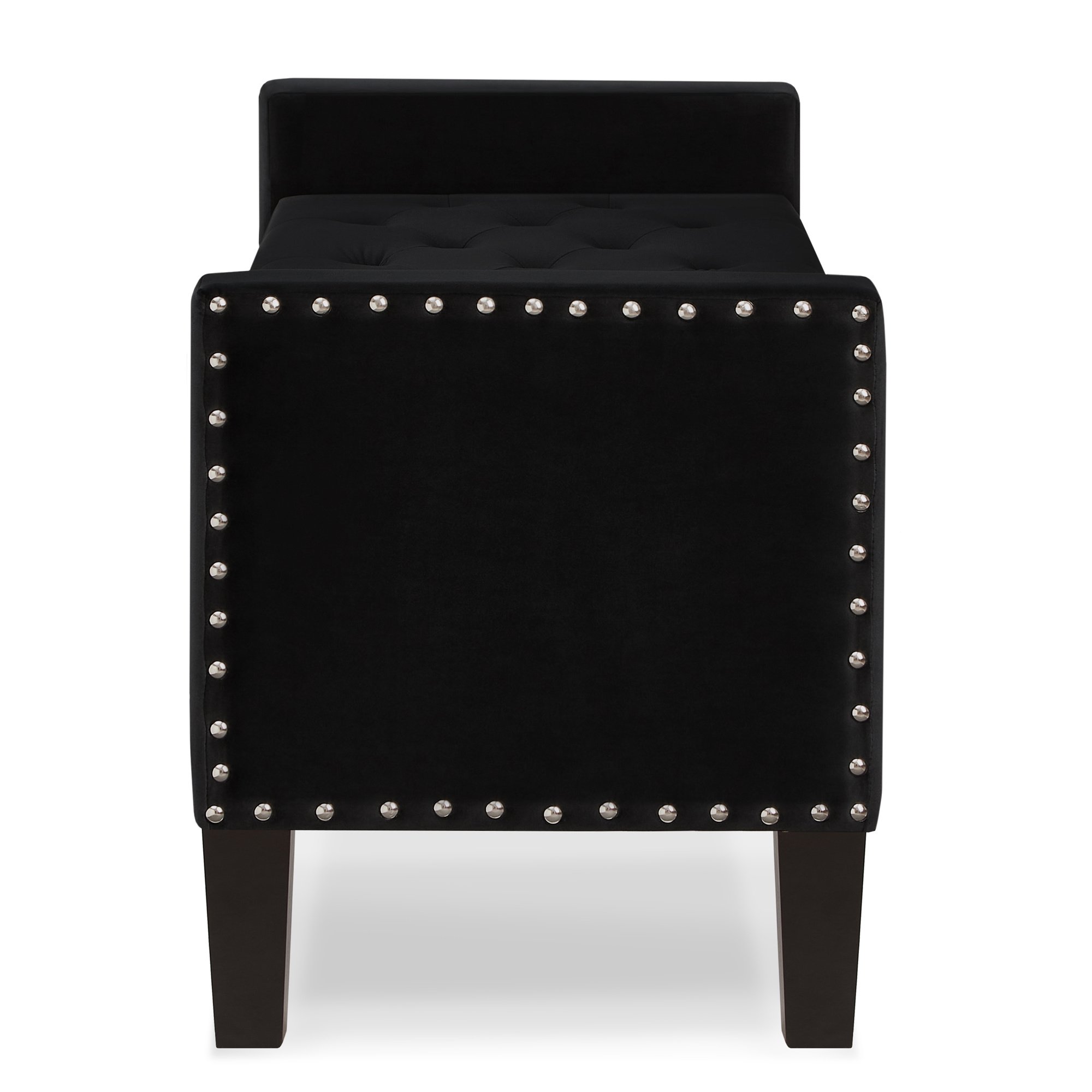 Home > Upholstered Tufted Button Storage Bench with nails trim,Entryway Living Room Soft Padded Seat with Armrest,Bed Bench-Black