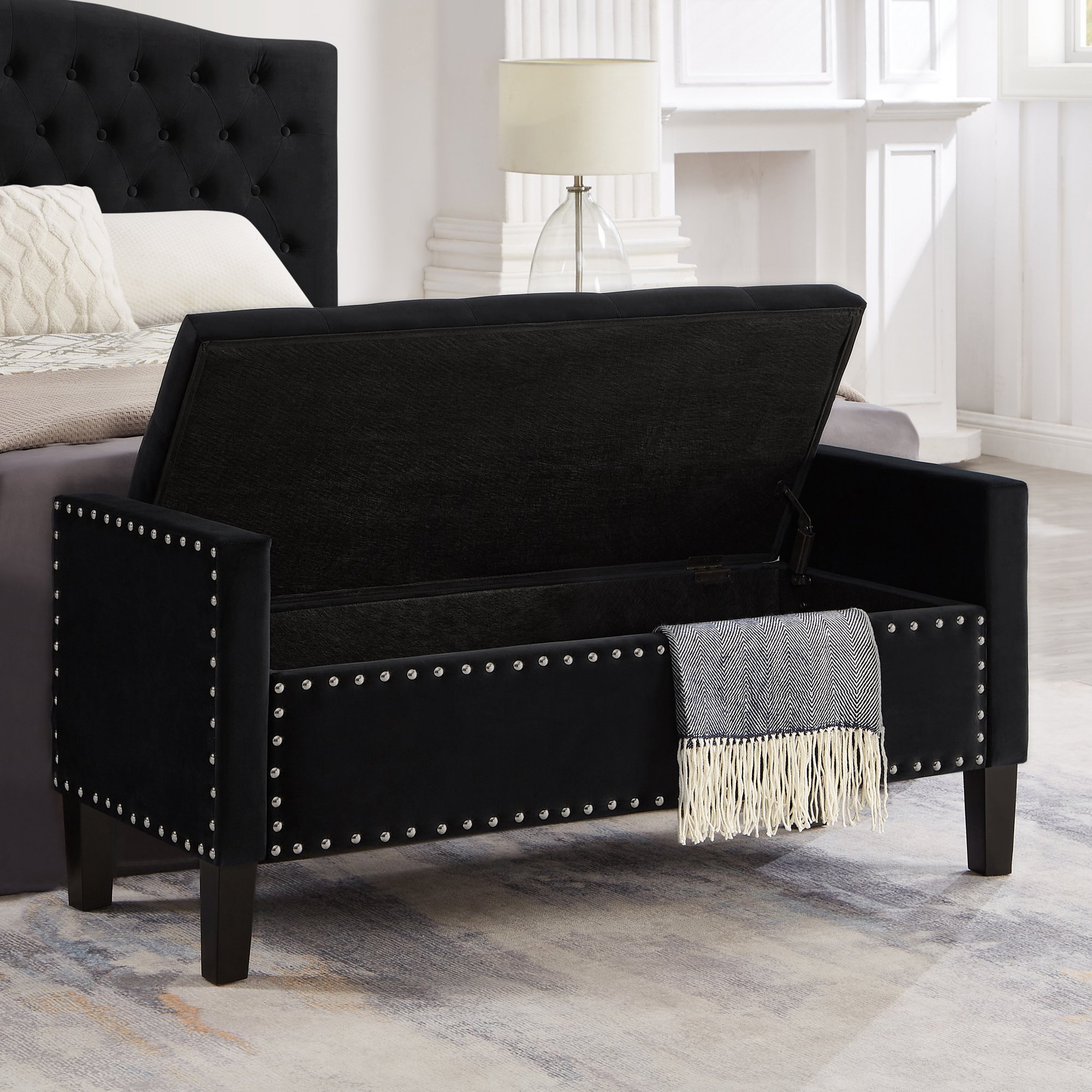 Upholstered Tufted Button Storage Bench with nails trim,Entryway Living Room Soft Padded Seat with Armrest,Bed Bench-Black