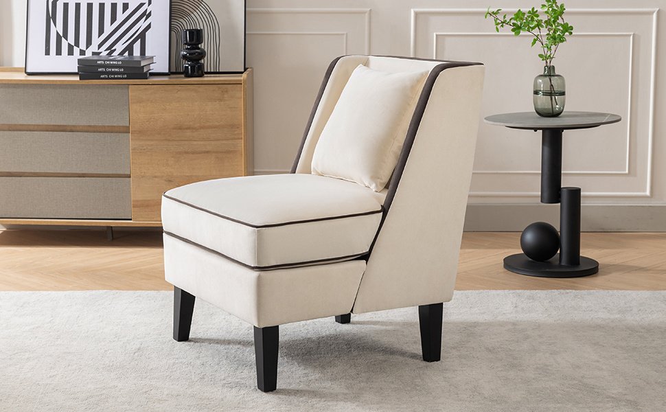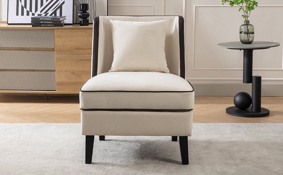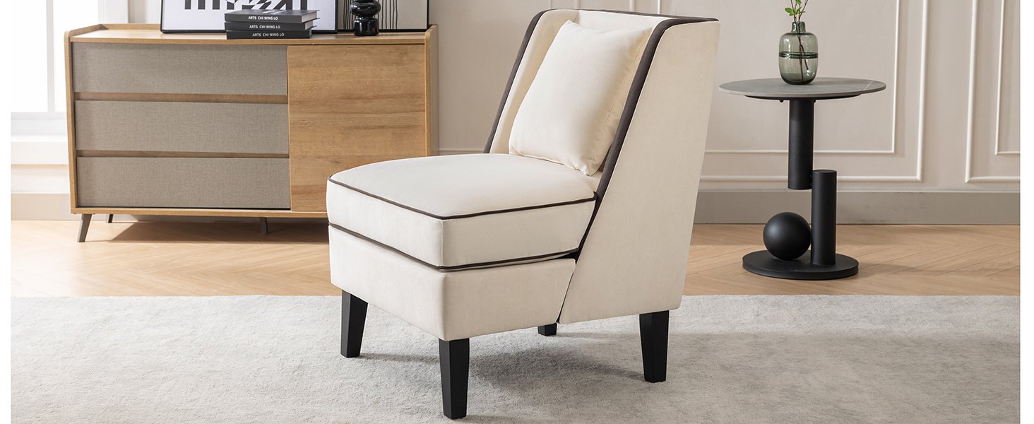 Home > Velvet Upholstered Accent Chair with Black Piping, Cream and Black